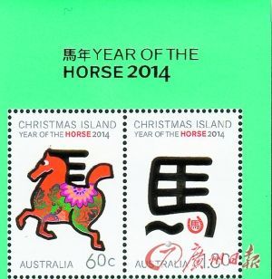 除了中國郵政之外,其他國家和地區也紛紛發行了各種與馬有關的郵品。例如,圭亞那發行了馬年小型張與小全張各一枚,以剪紙和書法為圖案﹔越南發行的馬年有齒與無齒郵票各一套2枚,畫面是以白雲襯托的鮮艷黃柔美的馬﹔新加坡今年發行的馬年郵票一套3枚,以夸張的風格設計,畫面為馬和具有吉祥寓意的中文。
