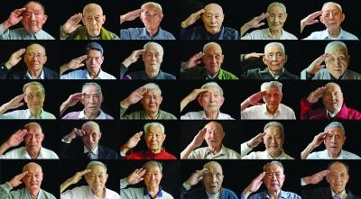 30位抗战老兵敬礼照,其中两位老人不久前已经去世。