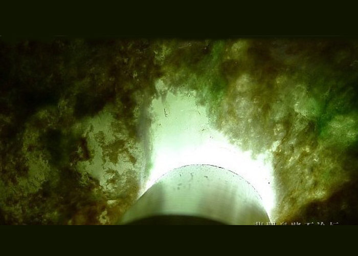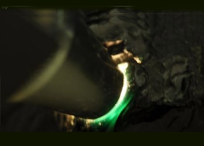 28/40图为老油青原石打灯表现。人民网艺术收藏频道郑重提醒您:赌石有风险,入场需谨慎。