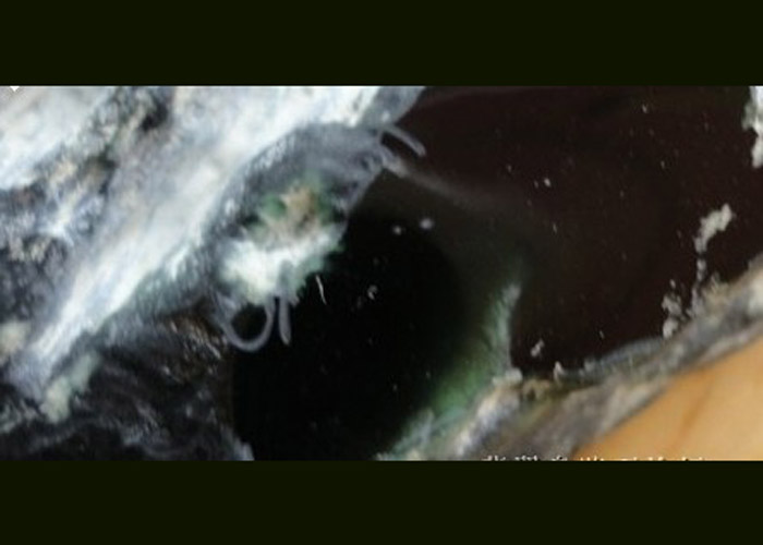 14/40图为翡翠冰种原石的打灯表现,开口处肉质发黑,如果肉质看上去没有发黑,那绝对不到冰。人民网艺术收藏频道郑重提醒您:赌石有风险,入场需谨慎。