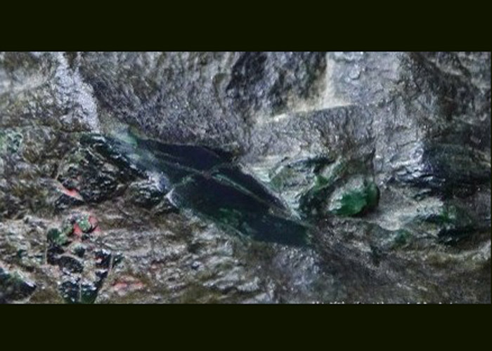 24/40图为墨翠原石。颜色很深。人民网艺术收藏频道郑重提醒您:赌石有风险,入场需谨慎。