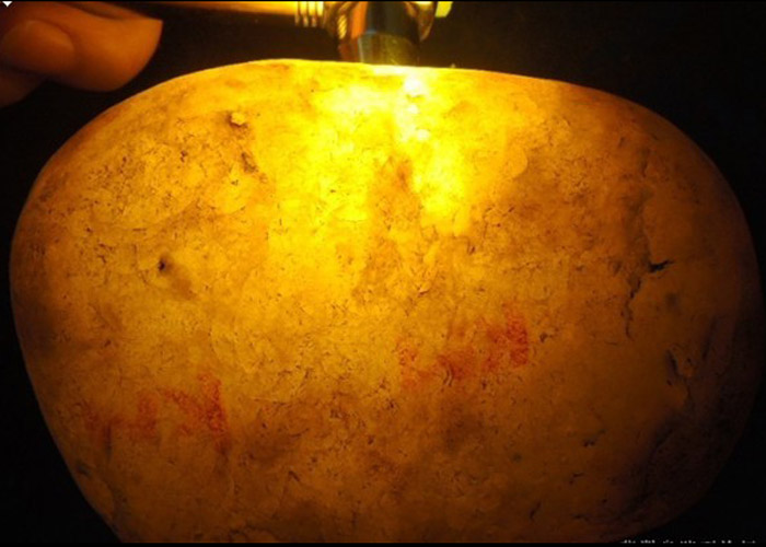 1/40为了方便各位赌石爱好者,多一份参考,小编帮大家收集一些了可供参考的资料。先发几张比较常见的原石打灯照,大家耐心看下,还是有区别的:图为会卡场口种嫩水长原石。人民网艺术收藏频道郑重提醒您:赌石有风险,入场需谨慎。