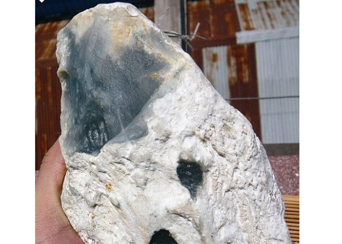 19/40图为玻璃种原石的自然光下表现。人民网艺术收藏频道郑重提醒您:赌石有风险,入场需谨慎。