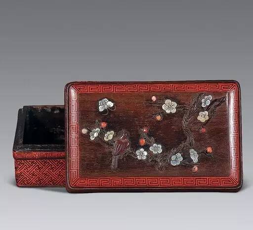 百宝嵌漆器:将各种宝物,如宝石、象牙、珊瑚以及玉石等材料有机结合到器物上,百宝生辉、使器物尽显富贵奢华之气。百宝嵌的图案花纹会随着照射光线角度的变化,发出各种各样的光彩,是我国古代工艺美术的一绝。