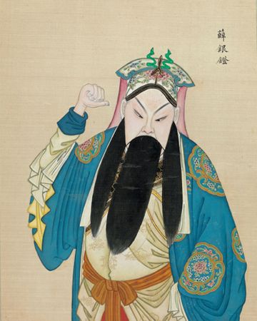 《百幅京剧人物图》是清末设色绢本京剧人物图包含一百幅京剧人物造型装扮图。此图册现藏于美国大都会艺术博物馆。