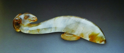继元人恢复了对带钩的尊崇后,明人沿袭了这一风尚,只不过此时带钩的赏玩之意远远超过了它的实用性。各项材质中,玉带钩所受关注最多。玉温润莹泽,自上古时期便被赋予了道德、礼法。“君子比德与玉,行则必配”“君子无故玉不去身”等先人教诲,此时仍被士大夫遵循。玉带、玉金圈、玉插、玉带钩等饰物成为他们赏玩、雅好的对象。明晚期赏玉之风的盛行,带动了玉带钩的制作与收藏。同时,玉石材料本身具有较高的经济价值,经过能工巧匠的加工后,收藏价值进一步提高;再者玉材的使用有严格的等级限定,可象征拥有者高贵的身份地位。今出土、传世的晚明时期带钩中,玉石材质的数量较为突出,如北京十三陵定陵出土的3件玉带钩、苏州虎丘王锡爵墓出土的玉带钩等,各地传世带钩也以玉质最为常见。另外,晚明玉石材料较为易得,或进贡或贸易,西域玉石流入中原地区,未进内帑者,文人士大夫争相收藏、赏鉴。