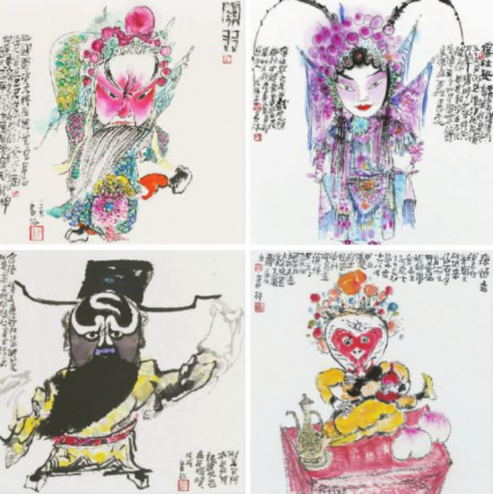 关羽(左上)、穆桂英(右上)、包龙图(左下)、齐天大圣(右下) 马书林